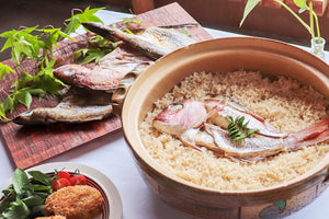 出汁は昆布だしにこだわり調味料を合わせた鯛めしセット。